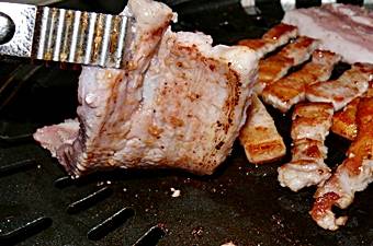 辛味噌で熟成した三枚肉、即席韓国式うどん、野菜盛り合わせ