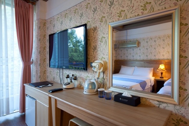 十分な広さが取られた客室は全室テラスがつき開放的な造りとなっています。Wi-Fiが無料で利用できますので、旅行情報やメールのチェックも問題ありません。付帯施設は屋外ミニプール(夏季のみ)、レストラン、セミナールーム、PCやプリンターが利用できるビジネスセンター、ランドリールームなどが揃っています。豊かな自然に囲まれたリゾート地で慶州の旅をお楽しみください。