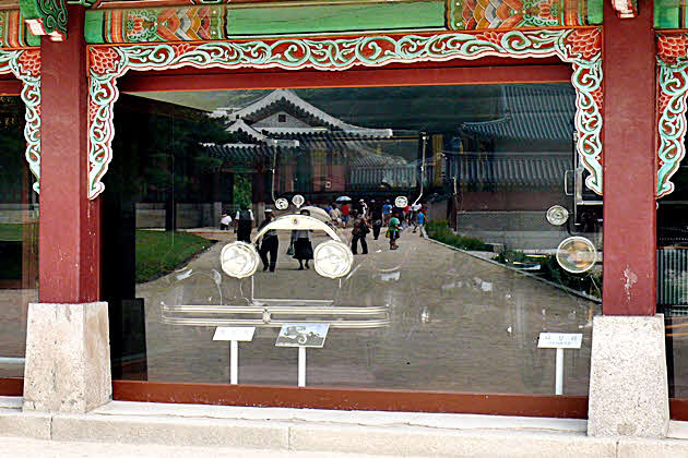 昌徳宮は1405年、正宮である景福宮の離宮として建造された宮殿で、光海君(クァンヘグン・1571-1641・李朝第15代王)以降、約270年に渡って李氏朝鮮王朝の政務が行われた王の御所。現在の韓国国内の宮殿の内、最も創建時の面影を残している宮殿で、日本の梨本宮家から嫁ぎ、大韓帝国最後の皇太子李垠の妃となった李方子(まさこ)もこの宮殿で過ごしました。ほかの多くの王宮が戦争や火災、あるいは植民地時代の日本の支配によって本来の姿を失っているのに対し、昌徳宮は保存状態がよく李氏朝鮮時代の趣や生活様式を色濃く残しているとして1997年にユネスコの世界遺産(文化遺産)に登録されました。 正門にあたる敦化門は大韓民国最古の門とされ、また敦化門をくぐった先には韓国最古の橋といわれる錦川橋があります。また正殿の仁政殿、王が執務をしていた宣政殿、王と王妃の寝所の大造殿など13棟の木造建築が存在します。宮殿の北に広がる李朝時代の王朝庭園である後苑は秘苑とも呼ばれ、園内には東屋や人工池などがあり韓国造園技術の傑作とされています。