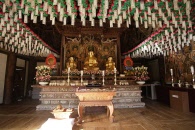 普門寺(ポムンサ)は新羅時代の635年に懐正(フェジョン)大師によって創建されたと伝わる名刹。普門寺のある山の形が、インドの南にある観世音菩薩が住むという普陀落山(フダラクサン)に似ていることから洛伽山(ナッカサン)と呼ばれ、寺を普門寺と名づけたとされます。普門寺の正殿横には天然の洞窟を利用した3つの入口を備えた石室があります。 その昔、ある漁師が網に掛かった石仏を夢のお告げで指示された場所に安置したところ願いがかなえらたという伝説が残っています。石室内には釈迦牟尼仏、弥勒、菩薩と羅漢像が安置されています。