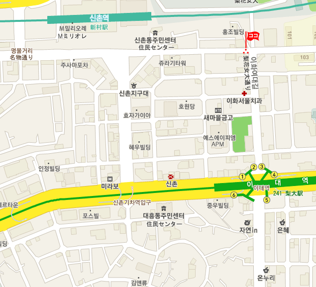観光地名 新村(シンチョン)/梨大(イデ)/弘大入口(ホンデイック)